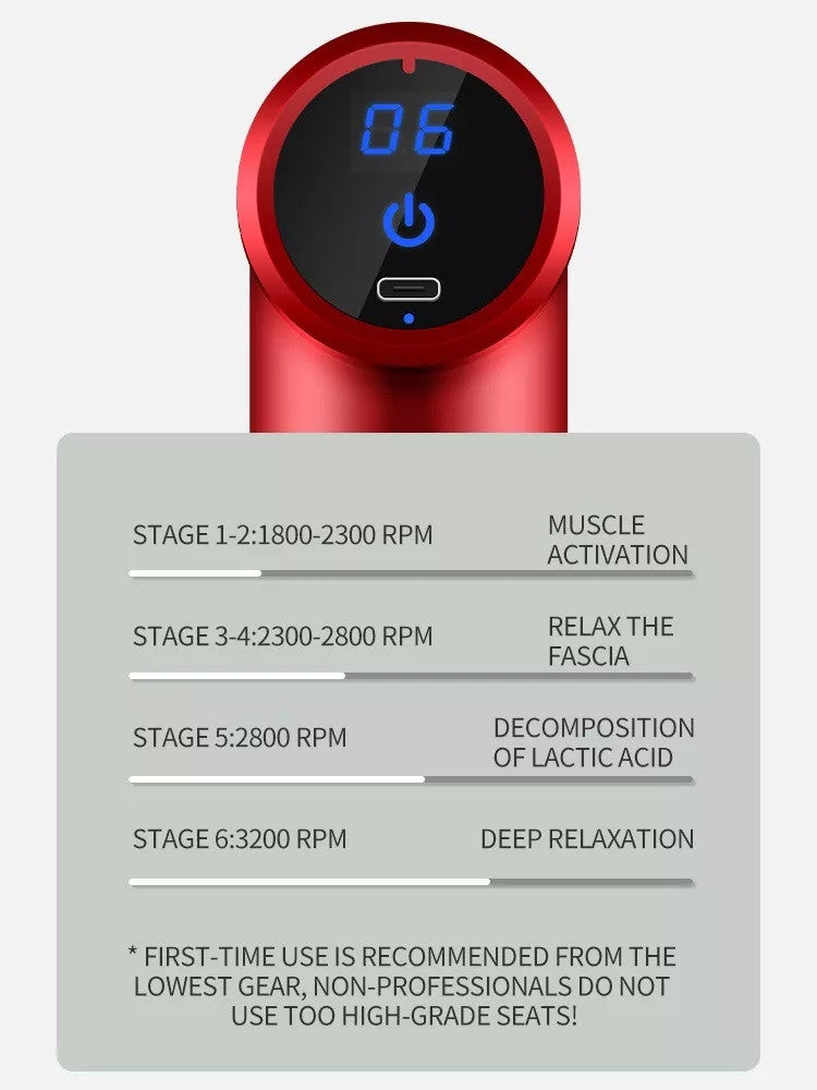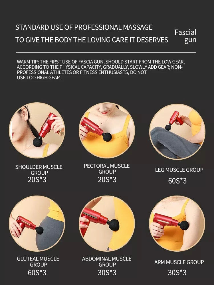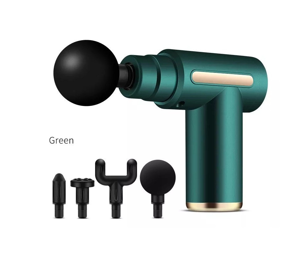 Pistola De Masaje De Percusión De Tejido Profundo 4 En 1  Características destacadas Pistola de masaje muscular profesional: El masajeador eléctrico portátil inalámbrico de la palma de la mano tiene un diseño hermoso y una fuerte vibración multifrecuencia. Puede aliviar eficazmente la rigidez muscular y el dolor, optimizar la circulación sanguínea y el rango de movimiento, y mejorar el Estado de salud de los tejidos blandos del cuerpo. Larga vida útil de la batería: Pistola de masaje integral, batería de litio con capacidad 1800 mAh, larga vida útil de la batería. El masajeador de tejido profundo está equipado con baterías recargables que funcionan de 3 a 5 horas. Para satisfacer los requisitos de ahorro de energía y seguridad, la pistola de masaje se apaga automáticamente después de 10 minutos de uso. Diseño muy tranquilo y ergonómico: El mango ergonómico minimiza las vibraciones externas, lo que hace que el masajista sea más relajado y cómodo con una pistola de masaje muscular, utiliza una técnica de silencio única. 4 Cabezas de Masaje & 8 Velocidades: Cabeza Redonda, cabeza plana, cabeza de horquilla, esfera de cabeza plana. Con vibraciones de alta frecuencia (1600 - 3000 veces por minuto), puede ajustar la frecuencia, elegir diferentes cabezas de masaje, le permite masajear los músculos de cada esquina del cuerpo, aliviar eficazmente la rigidez muscular, el dolor y el dolor. Un regalo perfecto: La pistola de masaje puede relajar su cuerpo, aliviar el estrés mental y hacer que su cuerpo sea más saludable que nunca antes. También alivia el dolor, la sensibilidad y el dolor en los músculos y articulaciones. Es un regalo ideal para la familia o los amigos. ESPECIFICACIONES: Velocidad/Frecuencia: 1200-3200 RPMCapacidad de la batería: 1800 mAhPotencia nominal: 60 W-80 WNúmero de cabezales de masaje: 4Horas de trabajo: más de 1 hora después de la carga completa, dependiendo de la velocidad que hayas utilizadoTiempo de carga: 2,5 a 3 horasModo de carga: carga USBMaterial: ABSEngranaje: 6 engranajes ControlRuido acústico: 45 dbVoltaje nominal: DC110-220VAmplitud: 6 mmTamaño de la pistola fascia /Peso: 13.3 * 13* 5 cm/0.6 kgColor según disponibilidad  POR TU COMPRA RECIBES: 1 Pistola de masaje4 Cabezal de masaje1 Cable USB1 Manual del usuario en ingles1 Caja exteriorGARANTÍA  ¿Tu producto tiene alguna novedad que debamos reportar?* Una vez recibas tu producto, cuentas con máximo 5 días para reportar a Soporte: piezas faltantes, rotas o cualquier novedad que presente el producto.*¿No era lo que esperabas?* Aplica Ley retracto Durante 5 días, contados a partir de la recepción del producto, para la devolución, ten en cuenta que debe estar en las condiciones que se recibió, con su empaque original, con las etiquetas, sellos de seguridad, y contar con todas sus partes y/o accesorios. Sin rayones ni manchas. Se recibirá únicamente en óptimas condiciones. Se anulará automáticamente el derecho a retracto si el producto fue usado.*¿Tu producto está presentando fallas?* Cuentas con 30 días de garantía por funcionamiento y/o daños del producto que no estén relacionados a su mal uso. Para hacer efectiva la devolución, el producto debe entregarse debidamente protegido cuidando el estado del empaque original, incluir todos los documentos y/o manuales (si aplica) y las partes completas